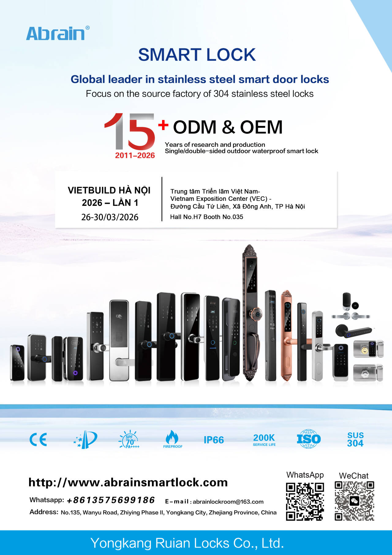 На выставке VIETBUILD Hanoi 2026 (26–30 марта) наша команда представит технологию интеллектуальных дверных замков, предлагая решения, сочетающие в себе безопасность, долговечность и современный дизайн. Присоединяйтесь к нам, чтобы узнать, как Abrain Lock может улучшить ваши проекты с помощью инновационных, надежных и высококачественных решений безопасности.